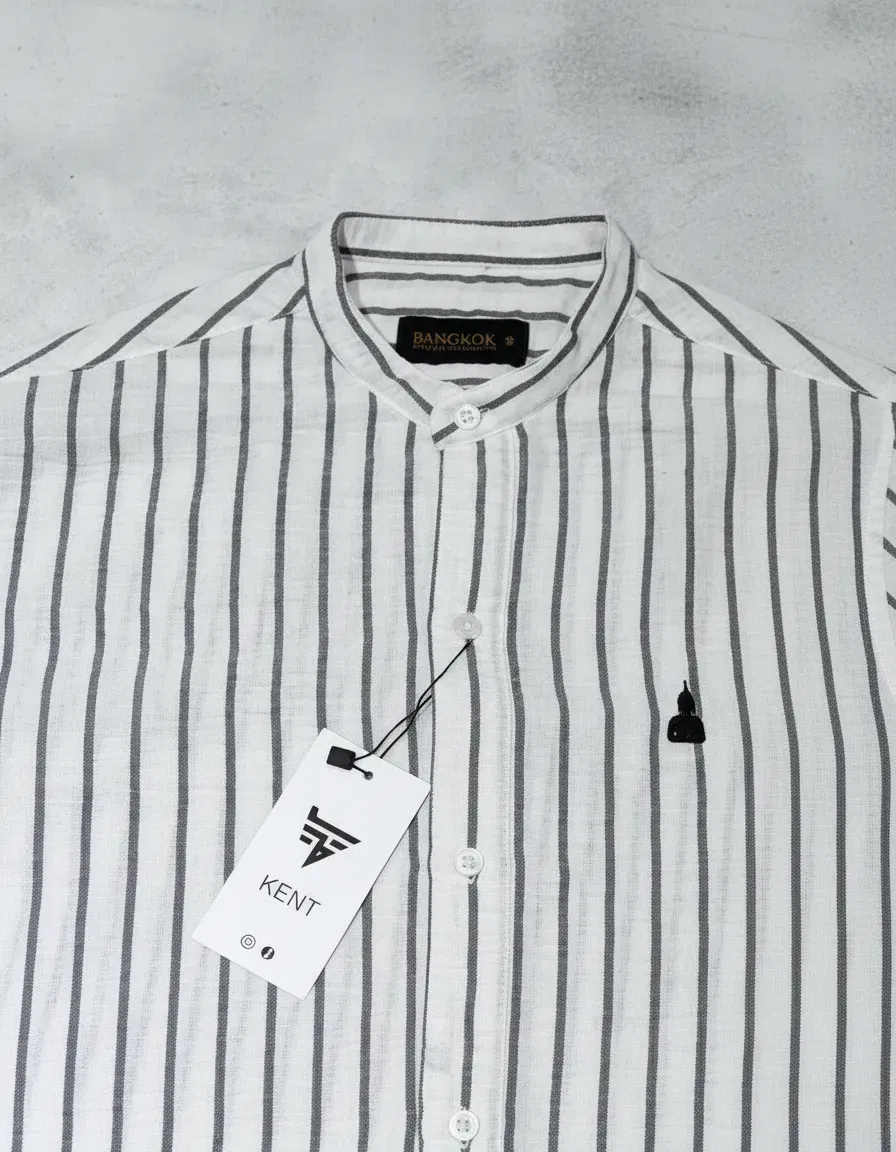CAMISA LINO MAO "PETERSBURG" BLANCO/GRIS